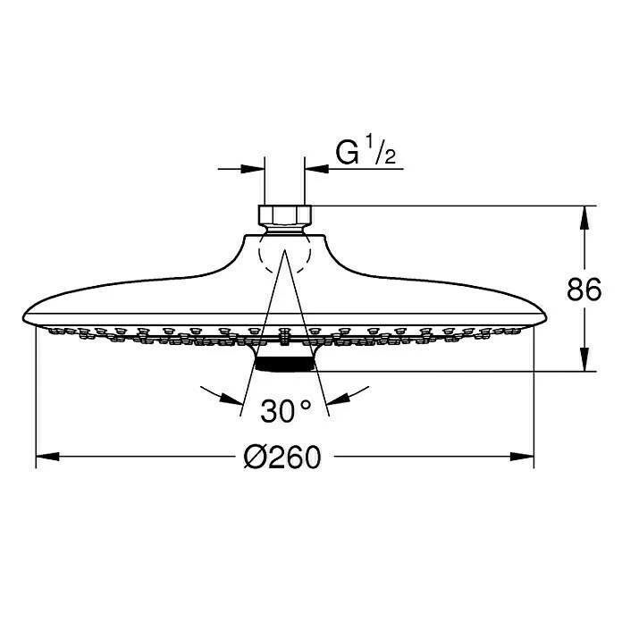 Die Kopfbrause Euphoria 260 von Grohe spart dank der integrierten EcoJoy Funktion Wasser und Energie und bietet gleichzeitig das perfekte Wassererlebnis. Sie bietet drei markante Strahlzonen, wobei das integrierte SpeedClean Antikalk-System lästige Kalkablagerungen effektiv verhindert. Um den gewünschten Strahl auszuwählen, muss die innovative Taste in der Mitte betätigt werden. Die Grohe DreamSpray® Technologie verteilt auf jede einzelne Düse die gleiche Wassermenge und erzeugt so einen angenehm gleichmäßigen Strahl. Durch den ½“ Anschluss passt sie auf jeden handelsüblichen Brausearm. Dank des Kugelgelenks ist sie auch nach der Montage, die einfach und schnell durch Anschrauben an den Arm erfolgt, schwenkbar und kann so jederzeit den eigenen Bedürfnissen angepasst werden. Der Inner WaterGuide garantiert, dass die Oberfläche der Kopfbrause niemals zu heiß wird und schützt dabei gleichermaßen die glänzende Grohe StarLight Chromoberfläche gegen Beschädigungen durch Hitze.