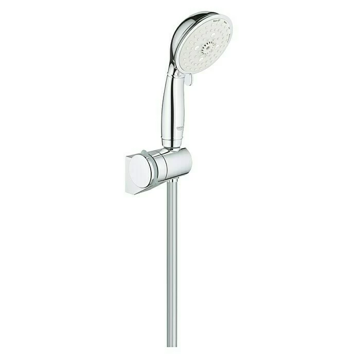 Das Brause-Set Tempesta Rustic 100 von Grohe besteht aus einer ergonomisch geformten Handbrause, einem 1,75 m langen Brauseschlauch sowie einem Brausehalter. Mittels drehbarer Strahlscheibe kann zwischen vier verschiedenen Strahlarten umgeschaltet werden. Dank des integrierten SpeedClean Antikalk-Systems werden Kalkablagerungen an der Handbrause effektiv verhindert. Dank des integrierten SpeedClean Antikalk-Systems werden Kalkablagerungen effektiv verhindert. Die Grohe EcoJoy-Technologie sorgt für einen reduzierten Wasserverbrauch bei gleichbleibendem Komfort. DreamSpray verteilt auf jede einzelne Düse die gleiche Wassermenge und erzeugt so ein gleichmäßiges, angenehmes Strahlbild. Durch den Silikonring am Brausekopf ist die Handbrause bestens vor Schäden durch Herunterfallen geschützt.