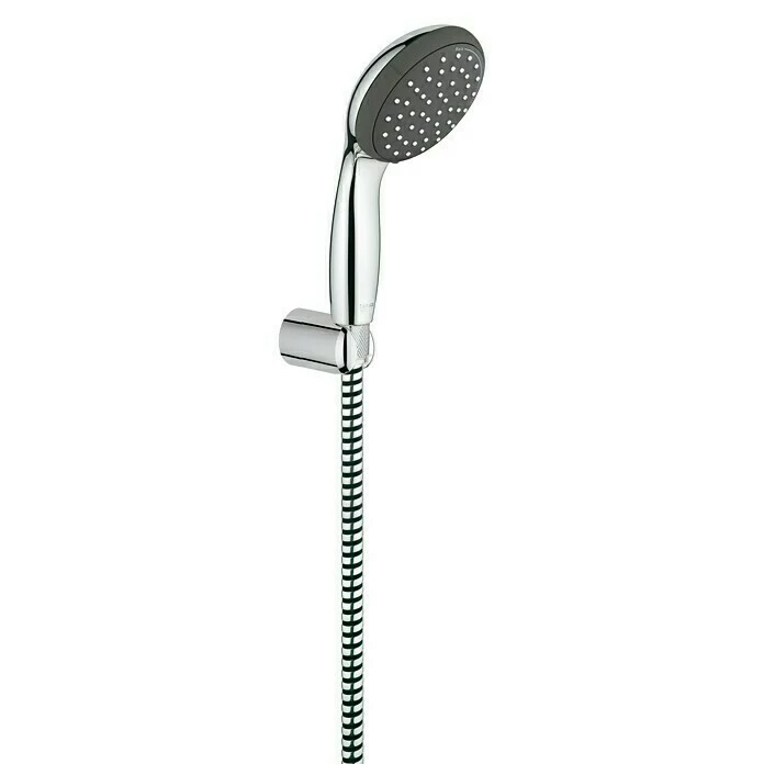 Mit diesem Brauseset von Grohe entscheiden Sie sich für eine Handbrause der Reihe Vitalio Start 100 inklusive Wandhalter und Brauseschlauch. Die Handbrause verbraucht dank der eingebauten Wasserspartechnologie bis zu 40 % weniger Wasser. Der Grohe DreamSpray® verteilt auf jede einzelne Düse die gleiche Wassermenge und erzeugt so einen angenehm gleichmäßigen Strahl. Lästige Kalkablagerungen werden durch das integrierte SpeedClean Antikalk-System effektiv verhindert. Dank Grohe StarLight besticht diese Handbrause auch nach Jahren noch durch ihre glänzende Chromoberfläche. Nach dem Duschen mit einem trockenen Tuch abwischen – fertig.