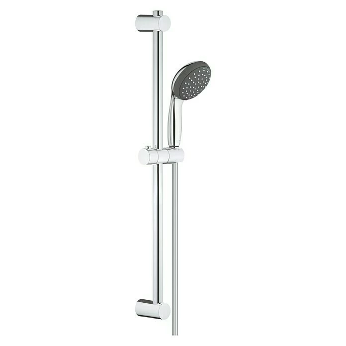 Bei der Brausegarnitur Vitalio Start 100 von Grohe steht das Duschvergnügen im Vordergrund. Sie überzeugt mit ihrem klassischen Design und bietet als komfortable Komplettlösung alles Notwendige für Ihre Dusche. Die Handbrause in modern abgerundeter Form verfügt über 2 Strahlarten – den Rainstrahl und Jet – die Ihnen ein rundum berauschendes Duscherlebnis garantieren. Der Grohe DreamSpray® verteilt auf jede einzelne Düse die gleiche Wassermenge und erzeugt so einen angenehm gleichmäßigen Strahl. Lästige Kalkablagerungen werden durch das integrierte SpeedClean Antikalk-System effektiv verhindert. Der ShockProof Silikonring am Kopf schützt vor Beschädigung durch Herunterfallen der Brause. Mit QuickFix lässt sich die obere Konsole der Brausestange variabel an vorhandene Bohrlöcher anpassen. Zudem sorgt der flexible Vitalioflex Trend Brauseschlauch für eine einfache Handhabung. Er ist knick- und druckfest und bietet optimalen Komfort.