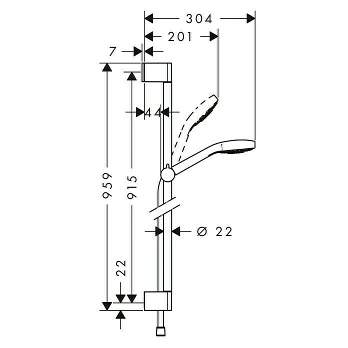 Die Brausegarnitur von Hansgrohe enthält eine Handbrause der Reihe Croma Select S Vario sowie einen Brauseschlauch, eine Brausestange und Wandhalter aus Kunststoff. Sie überzeugt durch ein sehr elegantes und modernes Gesamtbild mit harmonisch aufeinander abgestimmten Elementen in Chrom und Weiß. Die innovative Select-Technologie ermöglicht ein bequemes Umschalten zwischen drei verschiedenen Strahlarten auf Knopfdruck. Dank der Quick-Clean Funktion verschwinden lästige Kalkablagerungen im Handumdrehen: Rückstände können von den flexiblen Anti-Kalk-Noppen einfach abgerubbelt werden. Der höhenverstellbare Schieber ist um 45° im Winkel verstellbar. Mit dem an der Handbrause integrierten Drehwirbel wird ein Verdrehen des Brauseschlauches verhindert, was für uneingeschränktes Duschvergnügen sorgt.