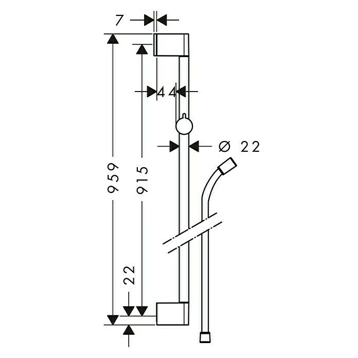 Die Brausestange Unica Croma von Hansgrohe lässt sich einfach in Duschen und Badewannen anbringen. Ihre Länge von 95,9 cm ermöglicht sowohl kleineren Kindern als auch großen Menschen eine uneingeschränkte Nutzung. Mit ihrem eleganten, modernen Design passt sie optisch zu fast jeder Handbrause und Armatur. Der Konusgleiter ist schwenkbar und höhenverstellbar und sein Neigungswinkel ist in zwei Stufen geräuschlos um bis zu 45 Grad verstellbar. Im Lieferumfang ist neben dem Montagematerial auch ein Brauseschlauch inklusive Drehwirbel enthalten.