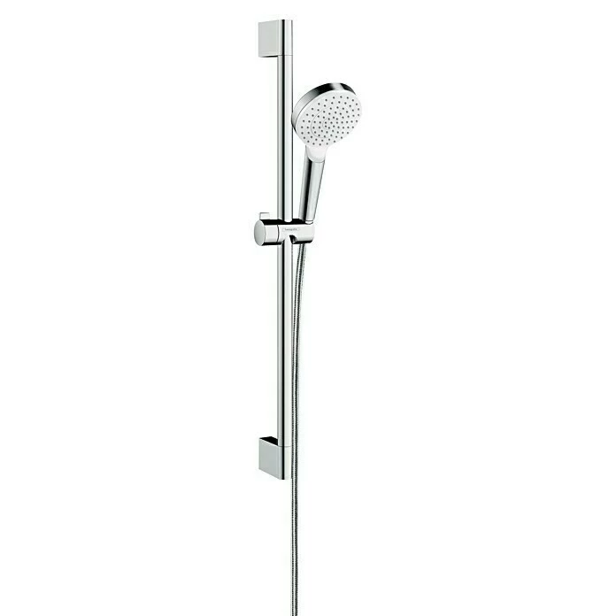 Die Hansgrohe Brausegarnitur Crometta 1 Jet überzeugt in Funktion und Design. Das Set beinhaltet eine Handbrause mit Brauseschlauch und eine praktische Brausestange mit verstellbarem Brauseschieber. Die verchromte Handbrause liefert auf Wunsch die Strahlart Rain. Diese hüllt einen traumhaft in Wasser ein und sorgt für XXL Perfomance im Bad. Mit der Quick-Clean Funktion verschwinden Rückstände im Handumdrehen. Lästige Kalkablagerungen werden aufgrund der integrierten Anti-Kalknoppen effektiv verhindert und durch Reiben der Noppen gelöst. Mit dem genormten ½“- Anschluss ist die Handbrause passgenau montierbar. Der Brauseschlauch ist aus reinigungsfreundlichem Kunststoff gefertigt und verfügt über einen brauseseitgen Drehwirbel, dass lästiges Verdrehen des Brauseschlauches effiktiv verhindert.