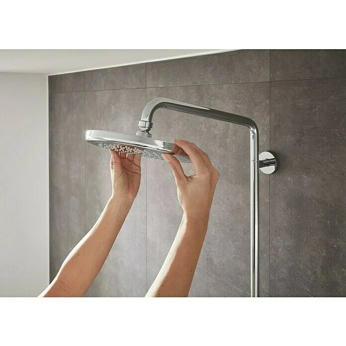 | Funktionen Duschsystem | Antikalk-Funktion, Kopfbrause, schwenkbar, Heißwassersperre, Handbrause, höhenverstellbar |