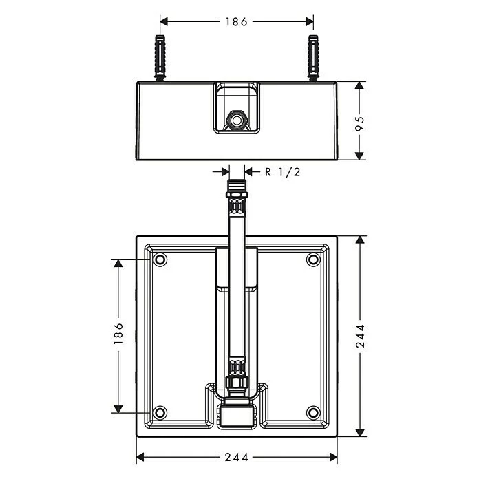 Das Unterputz-Grundset wird für den Einbau der Hansgrohe Kopfbrausen Raindance 260 benötigt. Diese werden damit flächenbündig in die Decke integriert. Das Grundset kann ausschließlich in Zwischendecken und nicht in Betondecken eingebaut werden. Der maximale Betriebsdruck beträgt 0,6 MPa und die maximale Heißwassertemperatur 60 °C. Die komplette Installation erfolgt gemäß DIN 1988 / EN 1717.