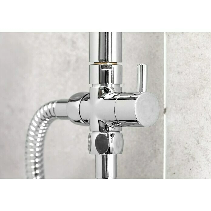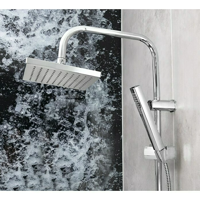 | Funktionen Duschsystem | Handbrause, höhenverstellbar, Kopfbrause, schwenkbar, Antikalk-Funktion, Brauseschlauch, verdrehsicher |