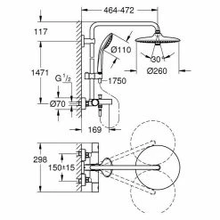 Bestpreis ⭐ BAUHAUS Mixomat Duschsystem Ohio Lochabstand: 70 Cm, Anzahl Strahlarten: 1 Stk., Chrom ⭐